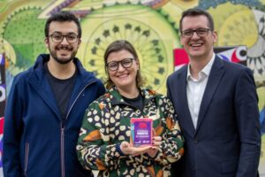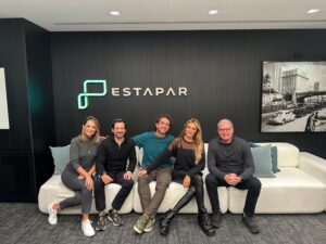 Da esquerda para a direita: Marcella Mosquini (diretora de Marketing da Estapar), Murillo Cerqueira (VP comercial e de operações