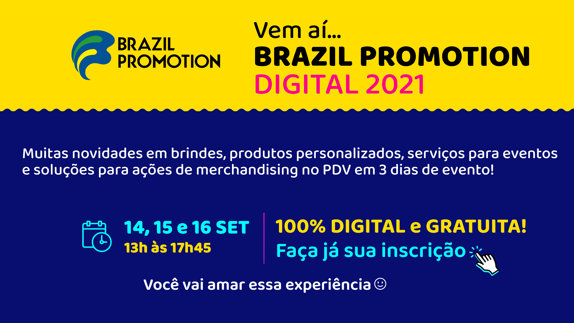A Brazil Promotion 2021 acontecerá neste ano em uma versão totalmente inovadora: digital e gratuita! Esta edição será realizada entre os dias 14 e 16 de setembro, das 13h às 17h45, e cumprirá o seu papel de estabelecer conexões e gerar negócios, prometendo auxiliar na retomada econômica do setor.