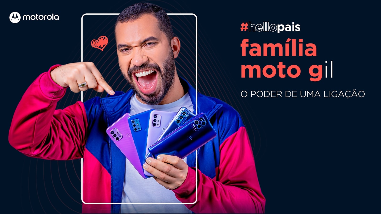 Em vídeos e peças que serão veiculados nos canais digitais da marca e nos pontos de venda em todo o Brasil, Gil do Vigor fala das características de cada modelo da família moto g e indica qual tipo de pai combina com eles. A aproximação da Motorola com Gil aconteceu ainda quando ele ainda estava confinado no Big Brother Brasil. Gil usava um smartphone da marca para acompanhar as edições anteriores do programa nas redes sociais e atualmente se comunica com os fãs usando um moto g100 5G, além de estrelar outras ações com a marca desde junho.