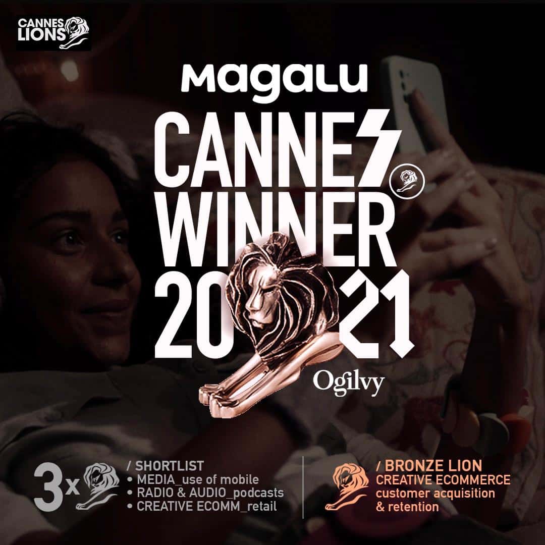 O Magalu, maior ecossistema para comprar e vender no Brasil e com milhões de clientes ativos, ganhou seu primeiro prêmio no Festival Internacional de Criatividade de Cannes 2020/21. Anunciado nesta quarta-feira, o Leão de Bronze recebido pela campanha ‘Shopping Inside Songs’, do projeto Decifrei, foi a única premiação do Brasil na categoria Creative e-Commerce.