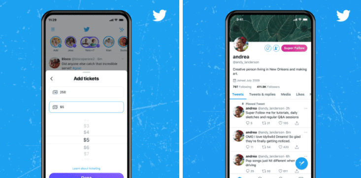 Com o intuito de atrair mais usuários e gerar mais receitas, o Twitter anunciou duas novidades: a primeira é o “Super Follows”, uma assinatura paga que dará acesso a conteúdos exclusivos para os usuários, e os Ticketed Spaces, uma espécie de ingresso para salas de áudio específicas.